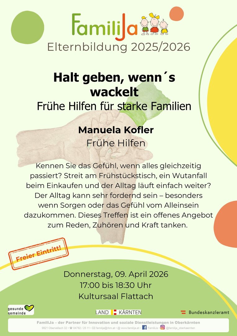 Elternbildung: "Halt geben, wenn's wackelt" - Frühe Hilfen für starke Familien mit Manuela Kofler